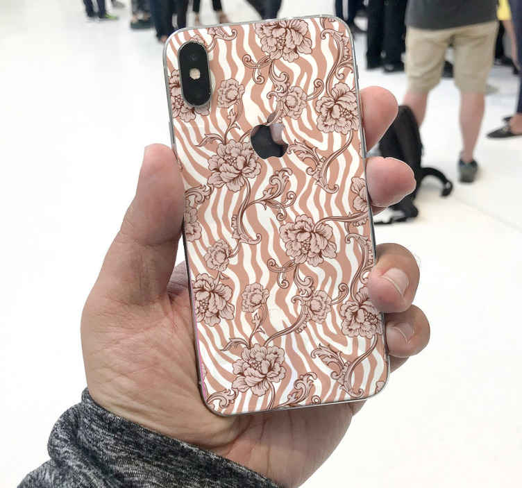 Pegatina iPhone Estampado de cebra y flores ornamentales coral