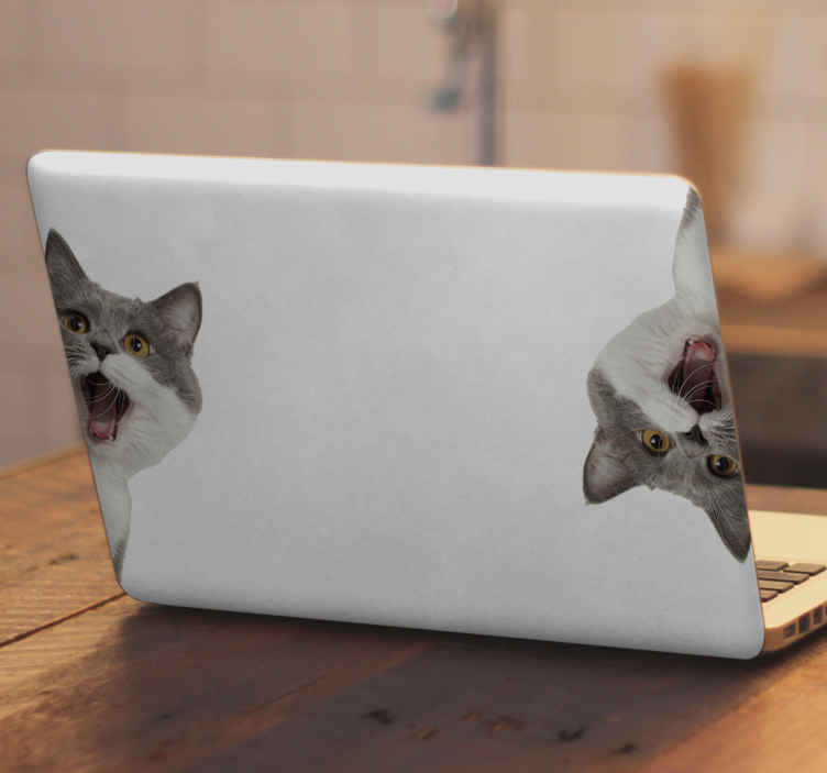 Pegatina para portátiles Gato espiando sobre fondo blanco