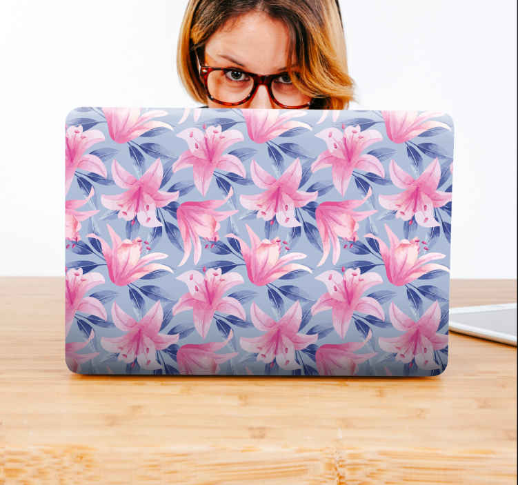 Pegatina para portátiles Ilustración floral acuarela rosa y púrpu