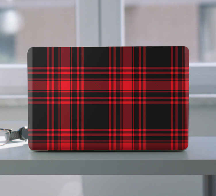 Pegatina para portátiles Patrón de cuadros rojo y negro de tartán
