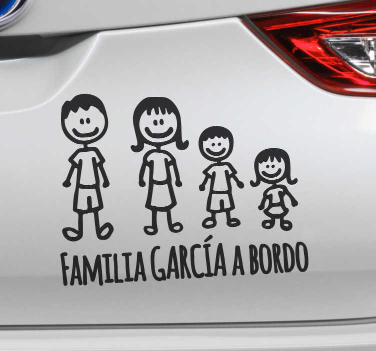Referencia: D204El diseño está formado por unos divertidos muñecos clip que son divertidos y sonrientes para que la nueva decoración de tu coche sea amigable y muy bonita. Solo tienes que seleccionar el tamaño que mejor se adapta a la carrocería donde lo quieras colocar, selecciona entre más de 40 colores y añade el nombre de la familia que quieres. En el campo personalizar puedes colocar el nombre que desees y al lado completar cuales serían los integrantes, hombre, mujer, niño, perro, etc. De este modo crearemos el vinilo coche personalizado según tus directrices. Nuestro objetivo es que tengas un producto en óptimas condiciones y de acuerdo con tus necesidades o gusto.