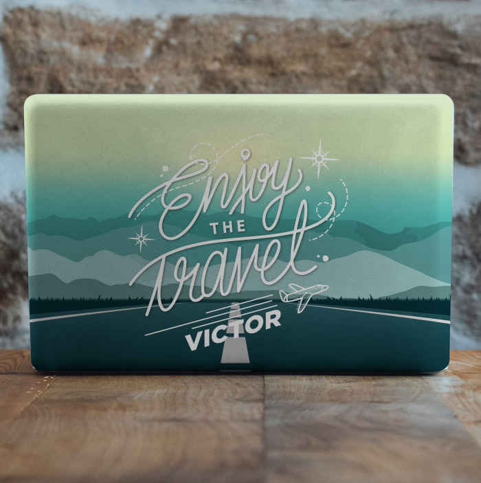 Vinilo para portátiles disfruta viajando con nombre