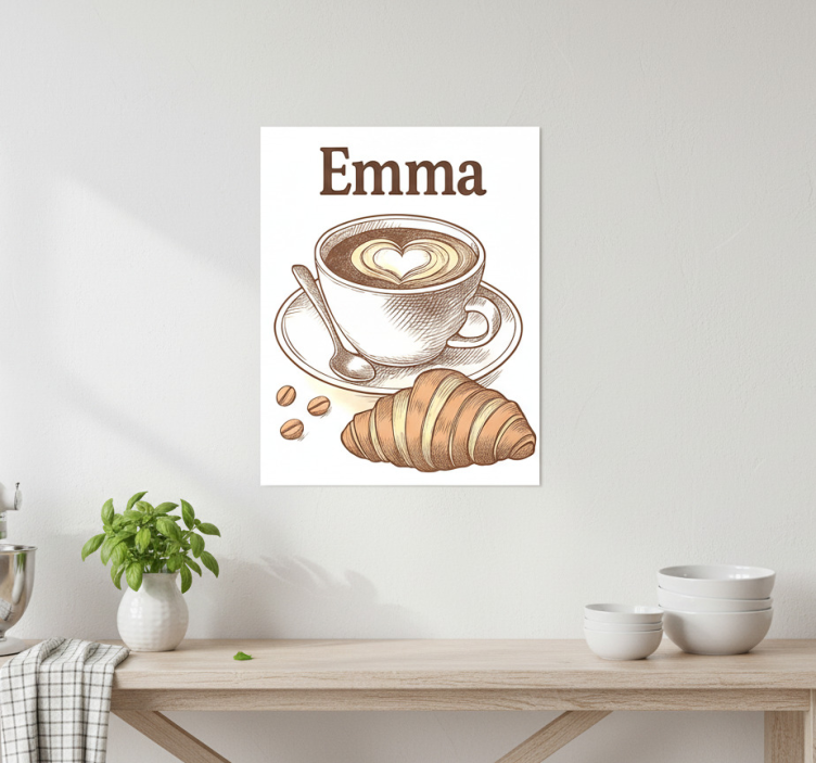 Referencia: G655Descubre la belleza de nuestra lámina decorativa: el Poster cocina diseño de café personalizado es una obra que resalta por su gramaje de 180g/m2, ideal para carteles, y su acabado semimate que evita reflejos, todo ello combinado con una alta intensidad de color que ilumina cualquier espacio. Este diseño único, que evoca la calidez de una acogedora cafetería, dará vida a tu cocina y hará que cada momento allí sea especial.