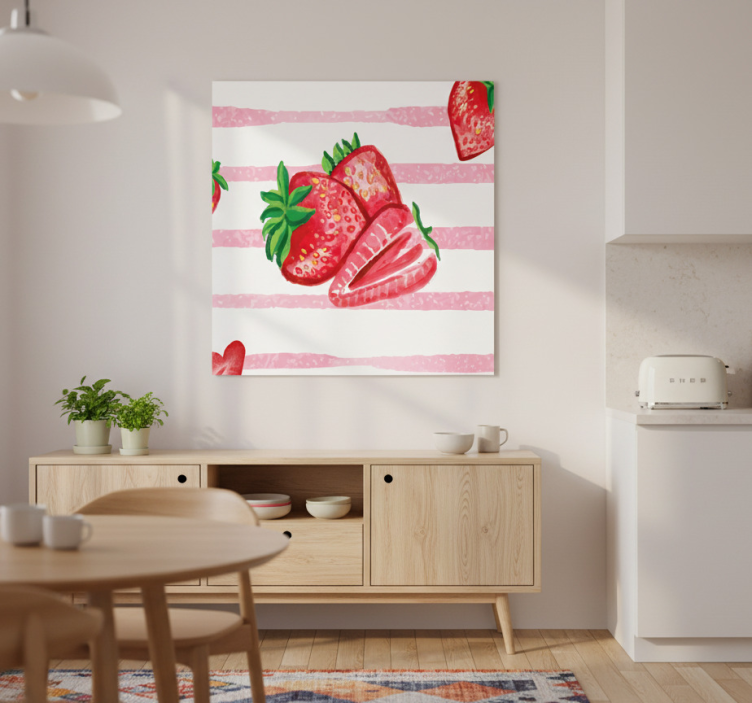 Un poster cocina fresas en fondo de rayas no solo embellece tu espacio, sino que también aporta frescura y alegría a tu cocina. Imagina despertar cada mañana rodeado de un diseño que evoca la vitalidad de la naturaleza. Este poster es perfecto para quienes desean crear un ambiente acogedor y lleno de vida, convirtiendo cada comida en una experiencia placentera. ¡Deja que tu cocina hable de tu estilo y personalidad!