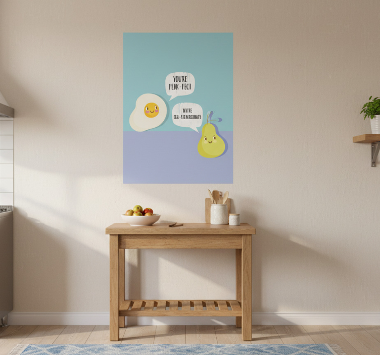 Referencia: G588Descubre la alegría de la cocina con nuestro Poster cocina huevo y pera juego de palabras, un diseño vibrante que combina colores intensos y un acabado semimate sin reflejos, perfecto para iluminar cualquier espacio. Esta lámina decorativa, realizada en un gramaje de 180g/m2, ofrece una calidad excepcional que se notará en cada rincón de tu hogar. ¡Es una explosión de creatividad y diversión que transformará tu cocina en un lugar lleno de vida!