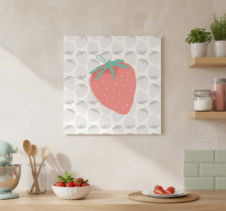 Para colocar el Poster para cocina patrón de fresas en tonos pastel, te recomendamos utilizar cinta adhesiva de doble cara en la parte posterior. Asegúrate de presionar firmemente cada tira durante 10 segundos. También puedes optar por enmarcarlo o usar chinchetas y blu-tack reutilizable para una opción más flexible. ¡Decorar nunca fue tan fácil y divertido!