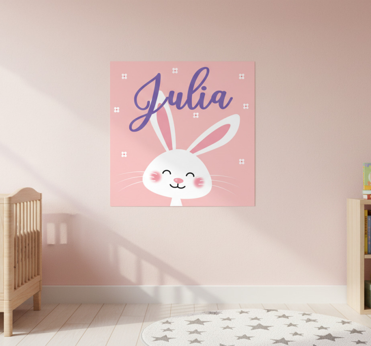 Poster dormitorio infantil conejito blanco con nombre