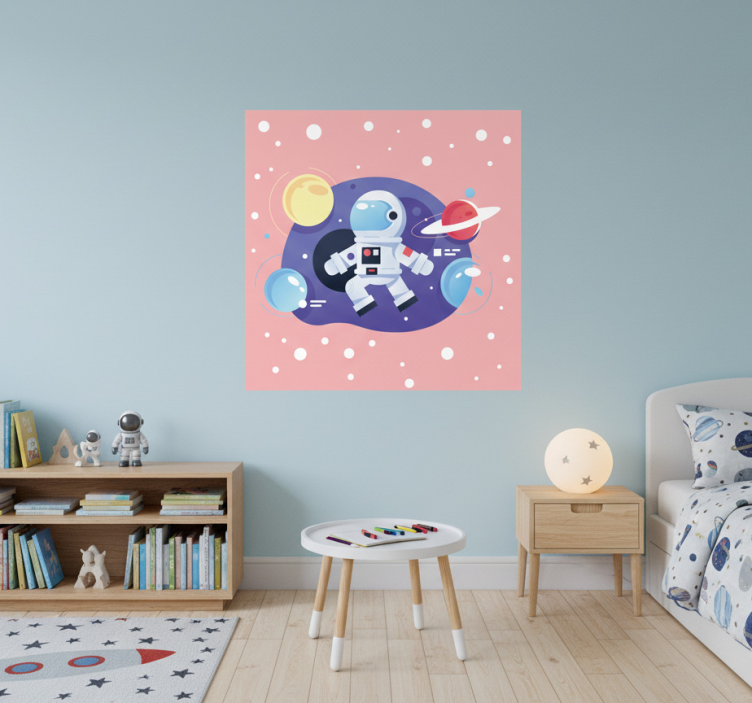 Referencia: G905Descubre la magia del espacio con nuestro Poster dormitorio infantil símbolos de astronautas, un diseño encantador que transforma cualquier habitación en un universo lleno de aventuras. Con su gramaje de 180g/m2, acabado semimate y alta intensidad de color, este póster no solo es visualmente atractivo, sino que también es duradero y perfecto para decorar el dormitorio de los más pequeños de la casa. Los simpáticos astronautas flotan entre estrellas y planetas, creando un ambiente inspirador y estimulante que fomenta la imaginación de los niños. ¡Ideal para despertar su curiosidad por el cosmos!
