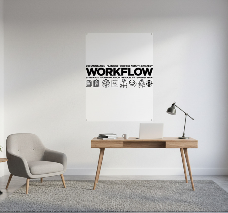 Incorporar el Poster oficina flujo de trabajo en tu decoración es una decisión inspiradora que puede cambiar la atmósfera de tu espacio. Este poster no solo embellece la oficina, sino que también sirve como un recordatorio constante de tus objetivos y tareas. Su atractivo gráfico y mensaje motivador crean un ambiente propicio para la concentración y la innovación, haciendo que cada día laboral sea más productivo y placentero.