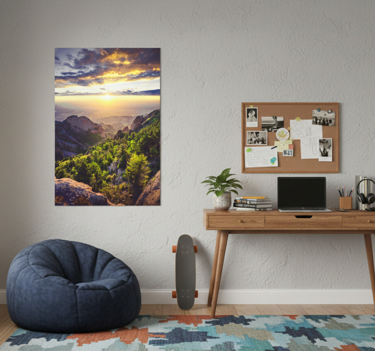 Referencia: G772Descubre la belleza del Poster salón amanecer en la montaña, una obra que captura la serenidad de un amanecer en las montañas. Con un gramaje de 180g/m2 ideal para carteles, su acabado semimate sin reflejos y la alta intensidad de color aportarán un toque de frescura y vida a tu espacio. Este diseño, repleto de matices cálidos y envolventes, transforma cualquier ambiente en un refugio de paz y armonía.