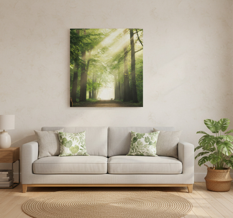 El Poster salón bosque verde con el sol es la elección ideal para quienes buscan infundir frescura y serenidad en su hogar. Este hermoso diseño no solo embellecerá tus paredes, sino que también te transportará a un lugar de paz y armonía. Su vibrante representación de la naturaleza es perfecta para cualquier rincón, inspirando momentos de reflexión y alegría en cada vistazo.