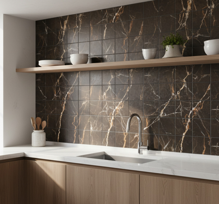El azulejo adhesivo mármol negro y dorado es la opción perfecta para quienes buscan darle un toque moderno y elegante a sus paredes. Su diseño sofisticado atrae la atención y añade un aire de lujo a cualquier habitación. Imagina cómo este azulejo transformará tu sala de estar, cocina o baño, convirtiendo espacios ordinarios en lugares excepcionales que reflejan tu estilo personal. ¡No te quedes sin probarlo!