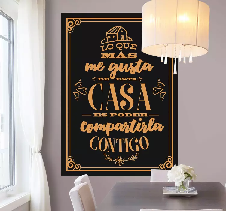 Esta frase es perfecta para mostrar satisfacción y agradecimiento por compartir tu hogar con otra persona. El diseño encantador creado sobre un fondo cuadrado vintage dejará cualquier espacio decorado con un aspecto elegante.