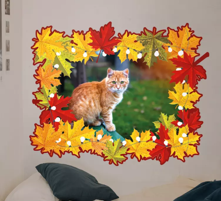 Descubre el encantador Marco adhesivo gato rodeado de hojas, donde un adorable gato se encuentra rodeado de un hermoso diseño otoñal. Este marco destaca por sus hojas coloridas y vibrantes, creando una atmósfera natural y cálida que iluminará cualquier espacio. Ideal para personalizar y enmarcar tus fotos, este producto es perfecto para los amantes de los animales y la naturaleza.