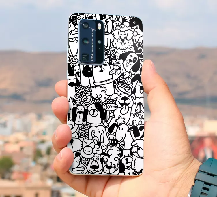 Descubre nuestra Pegatina Huawei motivos de perros juguetones, una hermosa y divertida creación que presenta adorables perros y cachorros en un patrón gracioso. Este estampado en blanco y negro es perfecto para darle un toque único y alegre a tu teléfono móvil, transformando tu dispositivo en una verdadera obra de arte que refleja tu personalidad y amor por los animales.