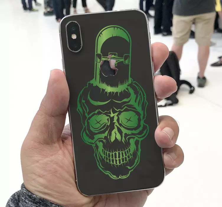Descubre la Pegatina iPhone diseño calavera verde, un producto que transforma tu teléfono móvil en una obra de arte única. Este diseño presenta una calavera verde vibrante, ideal para aquellos que buscan un estilo atrevido y original. Perfecta para quienes son amantes de la patineta y desean reflejar su personalidad en su móvil. Con este diseño, tu teléfono se convertirá en el centro de atención.