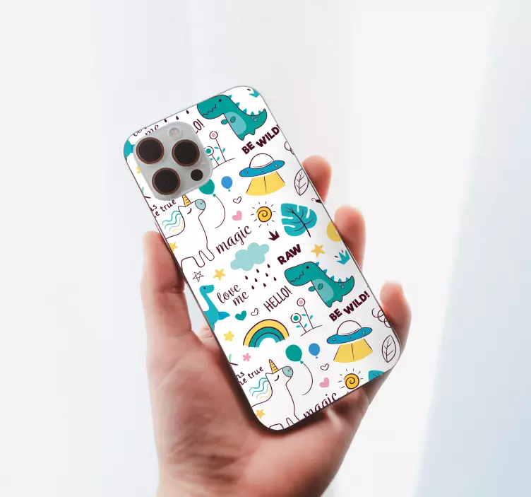 ¡Descubre nuestra Pegatina iPhone patrones de criaturas fantásticas! Este vibrante diseño presenta dinosaurios y un unicornio en un patrón lleno de magia y fantasía. Ideal para quienes buscan un estilo lindo y vistoso en su teléfono móvil. Con esta pegatina, tu iPhone no solo se verá único, sino que también reflejará tu personalidad creativa y divertida. ¡Haz que tu dispositivo destaque entre la multitud!