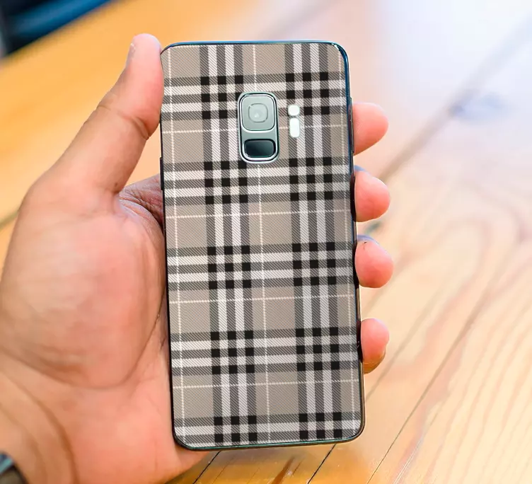 Descubre el estilo único de nuestra Pegatina Samsung estilo motivo cuadros, que presenta un diseño gráfico moderno con un elegante patrón de tartán en tonos beige y gris. Este adhesivo, fabricado con tela de alta calidad, no solo embellece tu teléfono móvil, sino que también ofrece una protección duradera contra arañazos y golpes. Con su estampado distintivo, tu móvil se convertirá en un verdadero reflejo de tu personalidad.