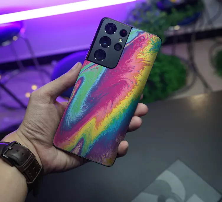 Descubre la Pegatina Samsung remolino fluido colorido, un adhesivo que transforma tu móvil en una obra de arte. Su diseño gráfico combina elementos de celda, teléfono y mármol, creando un efecto de arcoíris que hará brillar tu dispositivo. Con esta pegatina, cada vez que saques tu móvil, ¡serás el centro de atención!