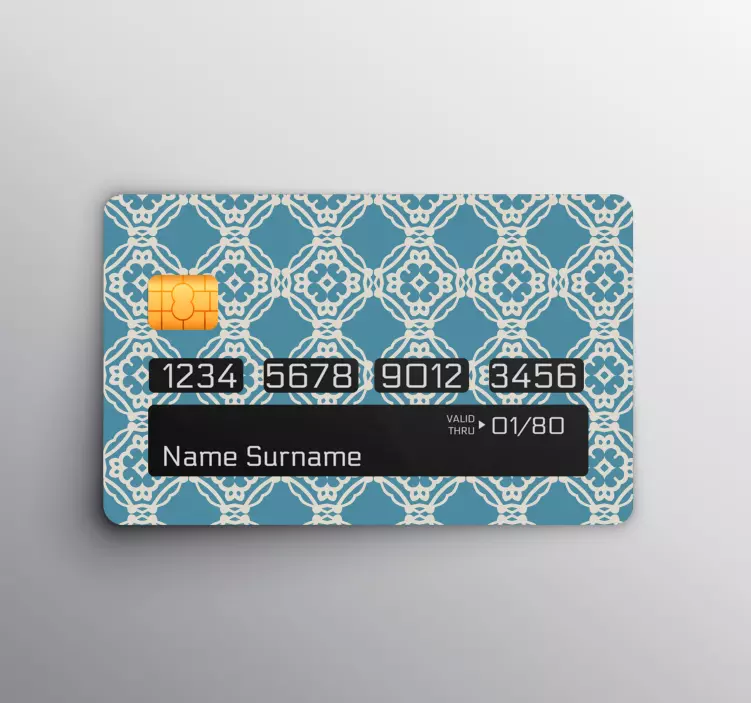 Descubre nuestro Sticker para tarjeta de crédito con diseño, una pieza única que transforma tus tarjetas en auténticas obras de arte. Con un estilo antiguo y un hermoso patrón de azulejos en tonos azul, este adhesivo combina un diseño ornamental y geométrico que añade un toque de elegancia y distinción. Su textura cuidada y la posibilidad de personalización hacen de este vinilo una opción ideal para expresar tu estilo personal en el ámbito de las Finanzas.