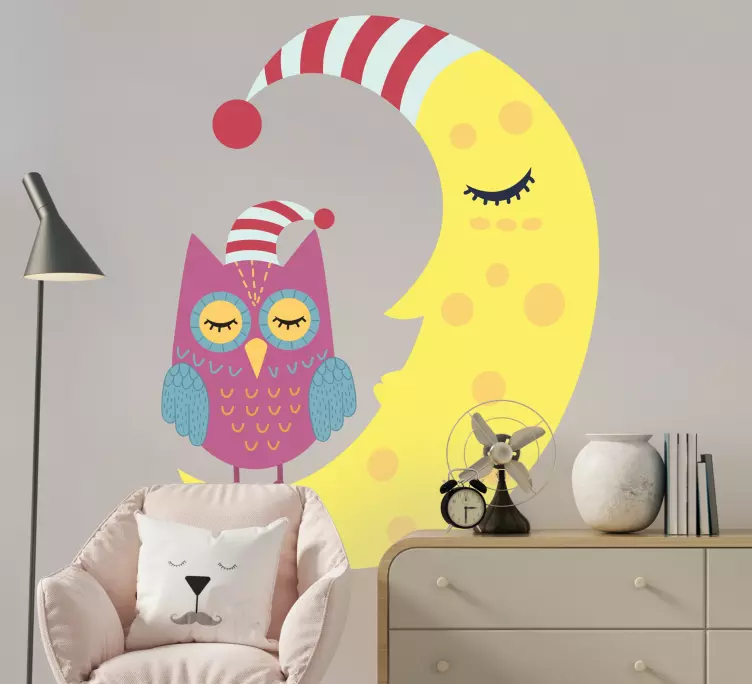 Transforma el cuarto de los niños con nuestro Sticker pared infantil búho somnoliento luna, un diseño encantador que presenta a un adorable búho dormido bajo la luz de una luna brillante. Este sticker, lleno de dibujos animados, aporta un toque lindo y vistoso, ideal para crear un ambiente cálido y acogedor durante la noche. ¡Es la decoración perfecta que hará que cada noche se sienta mágica!