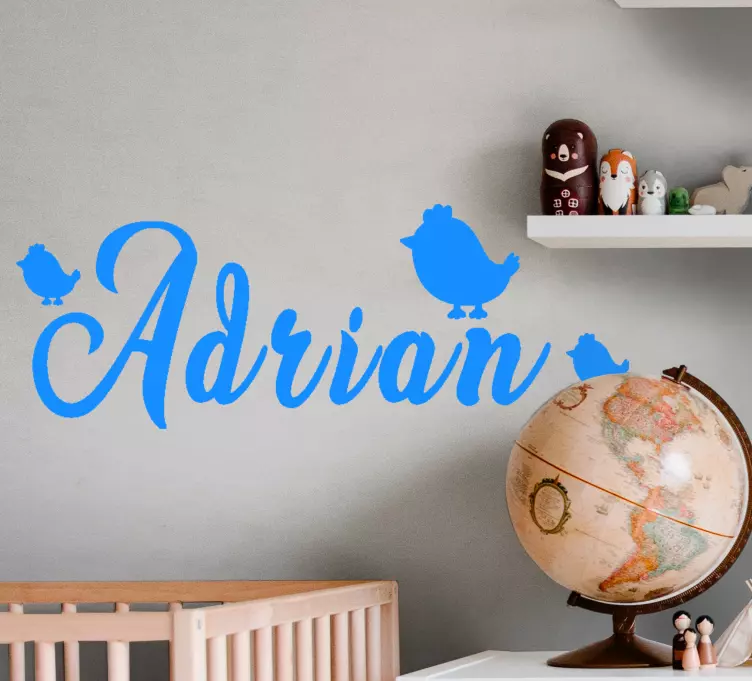 Sticker pared infantil nombre personalizado con aves