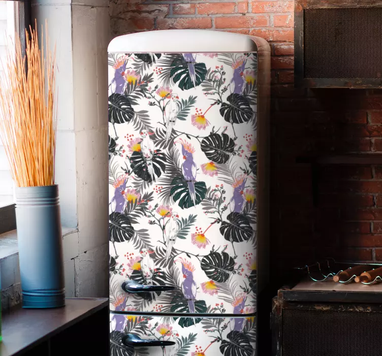 Descubre el Vinilo animal de granja estampado floral tropical, una obra de arte para tu refrigerador que transforma cualquier espacio en un vibrante paraíso tropical. Con un hermoso patrón que incluye hojas exuberantes y coloridos loros y cacatúas, este diseño destaca por su verdor y su estilo vistoso, trayendo la naturaleza a tu hogar de una manera única y encantadora.