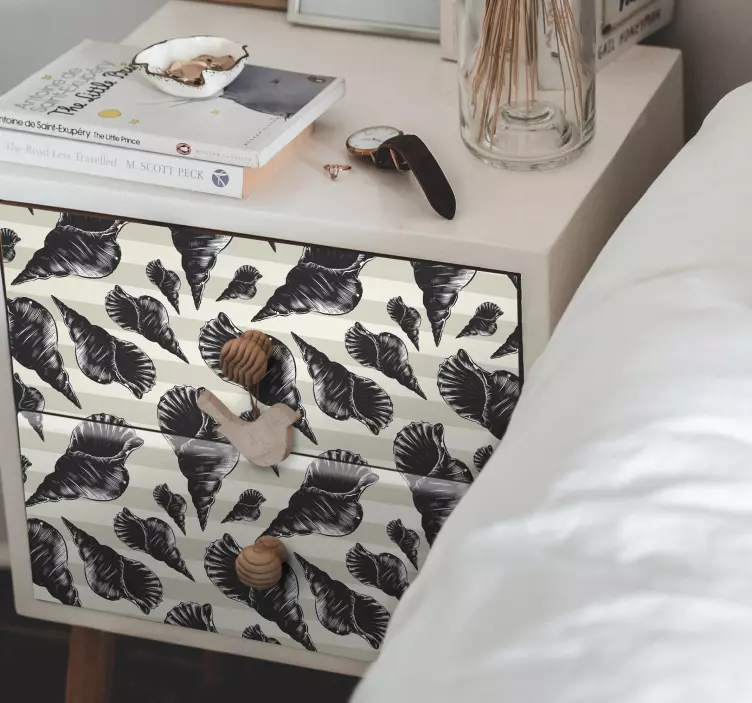 Descubre la elegancia del vinilo con motivo de conchas, un diseño que captura la esencia de la naturaleza a través de un hermoso patrón de conchas marinas en blanco y negro. Este estampado sofisticado se adapta a la perfección a cualquier mueble, aportando un toque de frescura y estilo a la decoración del hogar. Con sus líneas suaves y rayas delicadas, cada rincón de tu espacio se transformará en un refugio de paz y belleza.