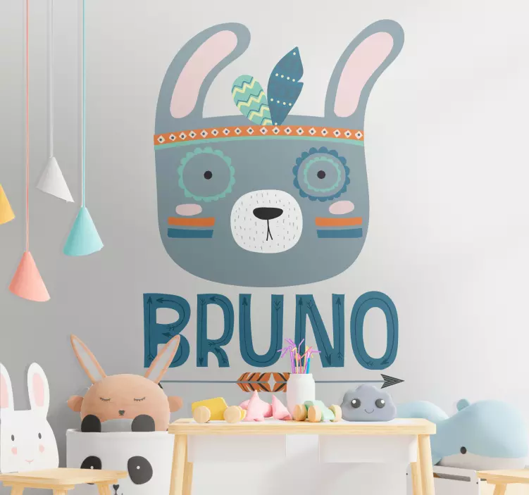 Vinilo decorativo personalizable Conejo nórdico con nombre