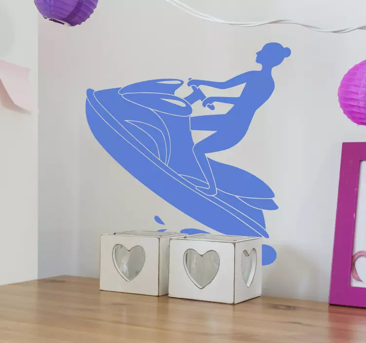 Vinilo deporte extremo mujer montando en moto de agua
