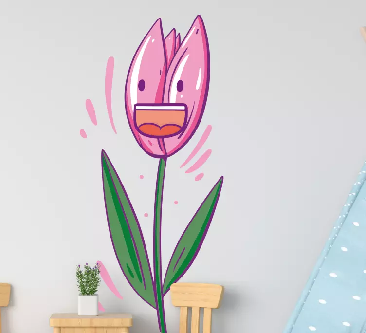 Descubre la alegría que brinda el vinilo flores diseño de tulipán feliz, un encantador diseño que muestra un tulipán juguetón, gritando de felicidad. Esta ilustración vibrante y divertida se convierte en el centro de atención en cualquier espacio, llenándolo de color y energía positiva. ¡Perfecto para quienes buscan darle un toque especial a su decoración!