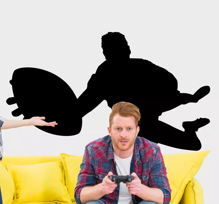 Descubre el vibrante vinilo fútbol atleta de fútbol enérgico, que captura la esencia del deporte en cada detalle. Con un diseño que incluye una dinámica silhouette de un jugador en acción, sosteniendo una bola de fútbol americano, este arte mural refleja movimiento y energía. Ideal para los amantes del rugby y el fútbol, este vinilo aportará un toque especial a cualquier espacio.