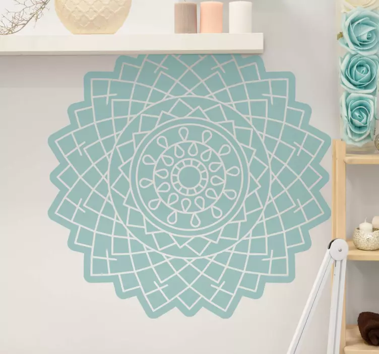 Descubre el encantador vinilo geométrico elemento geométrico intrincado, una pieza decorativa que fusiona magistralmente mandalas, patrones étnicos y elementos ornamentales. Su simetría y diseño geométrico aportan un aire de modernidad y sofisticación a cualquier espacio, convirtiéndolo en un elemento imprescindible para quienes buscan una estética contemporánea y vibrante.