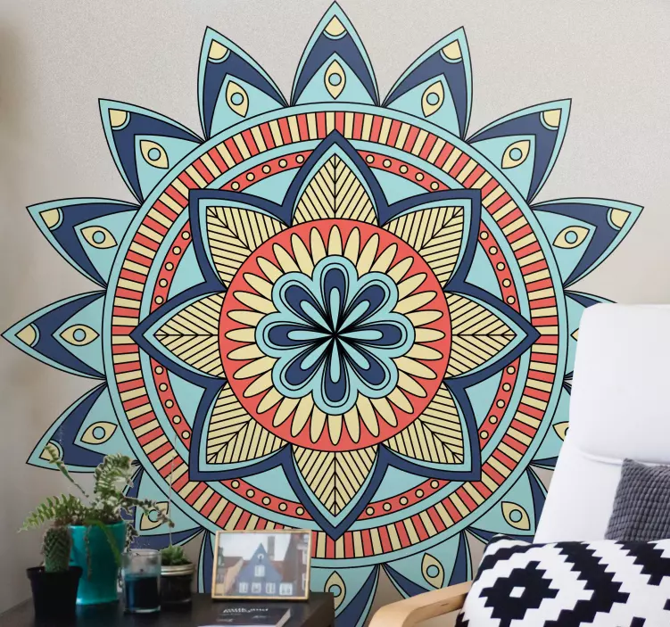 Descubre la belleza de nuestro vinilo geométrico motivo mandala vivo, una pieza decorativa que fusiona elementos florales y mandalas en una ilustración geométrica y vistosa. Este diseño único es una expresión de Arte que transformará cualquier espacio, aportando un toque de frescura y elegancia que cautivará a todos tus invitados. ¡Déjate llevar por su magia!