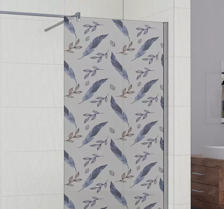 Transforma tu baño en un oasis de elegancia con el Vinilo mampara baño hoja elegante, que presenta un hermoso diseño de plumas y un patrón que evoca la naturaleza. Este estampado de hojas combina a la perfección con los colores suaves, aportando una atmósfera relajante y sofisticada a tu espacio. Ideal para quienes buscan un toque especial que complemente su casa, el Vinilo mampara baño hoja elegante es la opción perfecta para tu ducha.