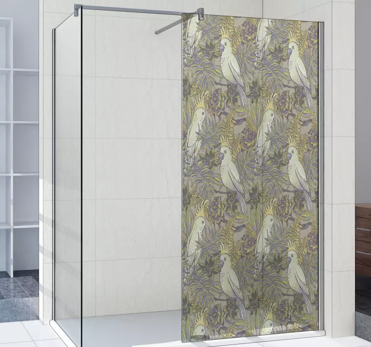 Descubre la belleza de la naturaleza en tu baño con nuestro vinilo mampara baño motivos aviares elegantes. Este diseño presenta un encantador patrón que incluye loros vibrantes, hojas exóticas y flores delicadas, creando un ambiente floral y decorativo que transforma tu espacio en un oasis de elegancia. La combinación de aves y elementos naturales aporta un toque fresco y alegre, ideal para quienes buscan una decoración única y estilizada.