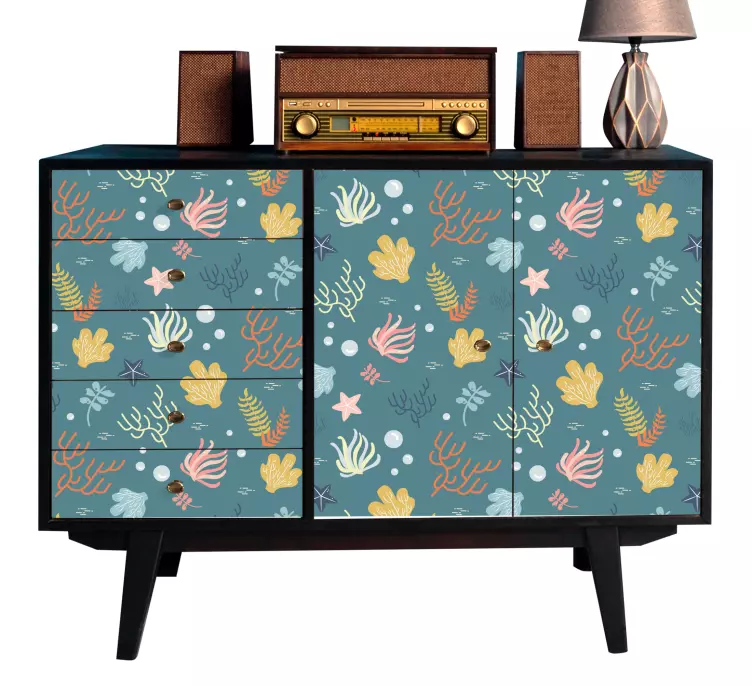 Este producto es perfecto para aquellos que buscan darle un toque submarino a sus muebles. Con un diseño genial de pegatinas para muebles con ilustración de corales submarinos y otras ilustraciones de vida submarina sobre fondo suave, cualquier lugar de los muebles parecerá hermoso. Además, la aplicación es fácil y se puede quitar cuando lo desee. La vinilo se puede personalizar en cualquier tamaño que desee, es duradera y no se arruga ni hace burbujas cuando se aplica.