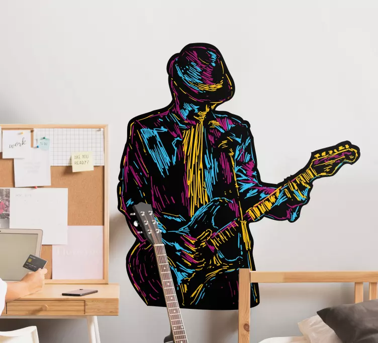 Vinilo musical silueta de guitarrista colorido