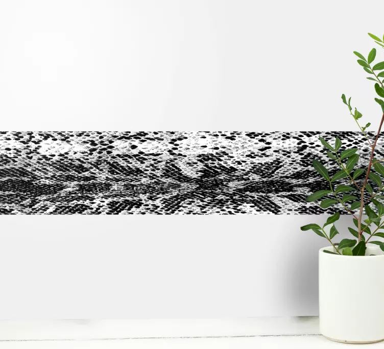 Descubre el Vinilo naturaleza patrón de escamas serpentina, una impresionante lámina decorativa que evoca la belleza de la fauna silvestre. Con un diseño que presenta una serpiente estilizada y una textura que recuerda a la piel de serpiente, este vinilo en blanco y negro se convierte en una pieza abstracta y elegante. Su cenefa y frontera añaden un toque de sofisticación, mientras que la huella animal ofrece un guiño a la naturaleza en su forma más pura. ¡Una manera perfecta de transformar cualquier espacio!