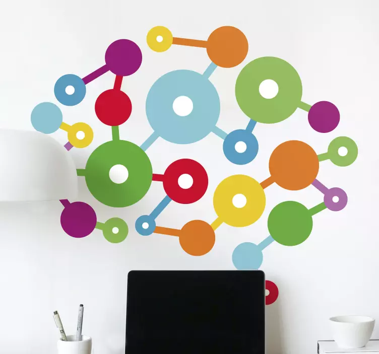 Este vinilo original de pared presenta una colorida ilustración de la ciencia de los nodos cerebrales. Es perfecto para decorar lugares infantiles, escuelas u oficinas. La aplicación en superficie es fácil y se puede pegar sobre cualquier superficie plana. Además, este producto está elaborado con los mejores vinilos del mercado y es removible sin dejar residuos en la superficie.