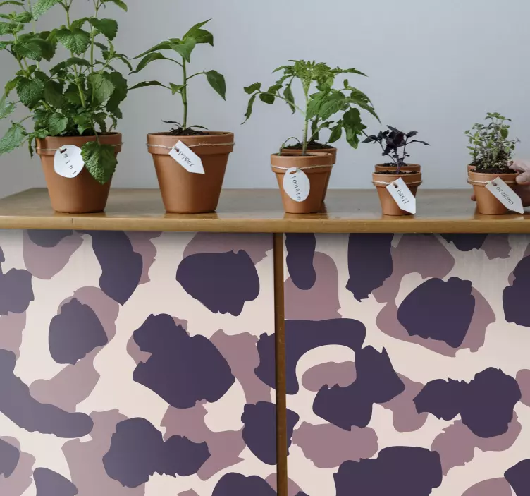 El vinilo ornamental estampado de leopardo es una pieza única que combina elegancia y modernidad en un hermoso patrón de camuflaje en tonos púrpura, lila y morado. Este diseño abstracto, inspirado en la naturaleza, transforma cualquier mueble en un elemento de decoración fascinante, añadiendo un toque salvaje y sofisticado a tu hogar. La huella animal que presenta este vinilo lo convierte en una opción ideal para quienes buscan dar un nuevo aire a su espacio.