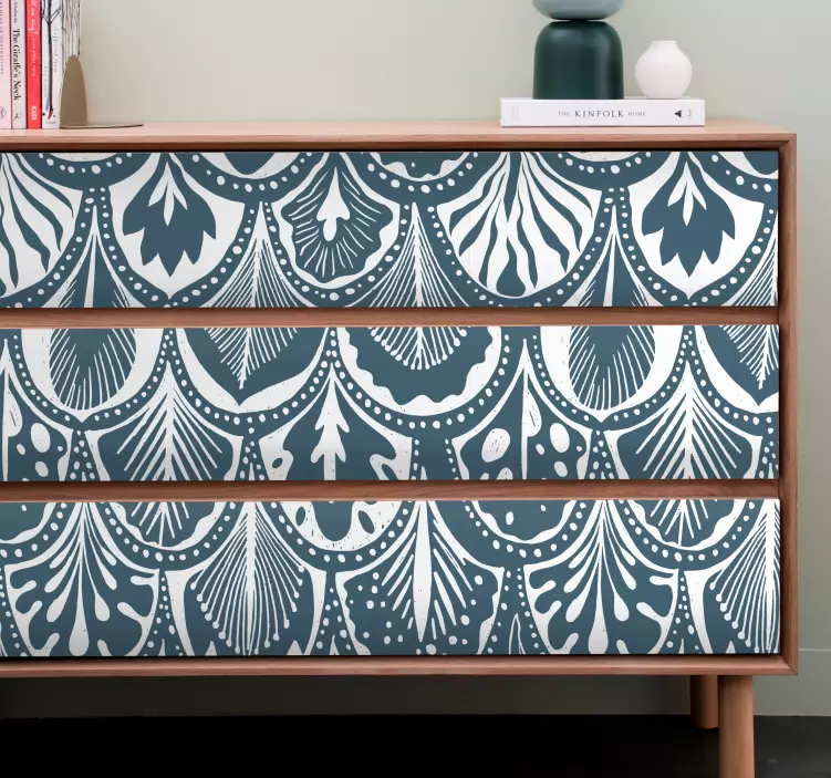 Descubre el encanto de nuestro Vinilo ornamental estilo de impresión floral, un diseño que combina elegancia y frescura. Con un hermoso patrón que evoca escamas de pescado, este estampado en tonos azul es perfecto para realzar tus muebles y darles un toque floral y ornamental. La textura única de este vinilo transforma cualquier espacio, convirtiéndolo en un refugio visual que deleita los sentidos.