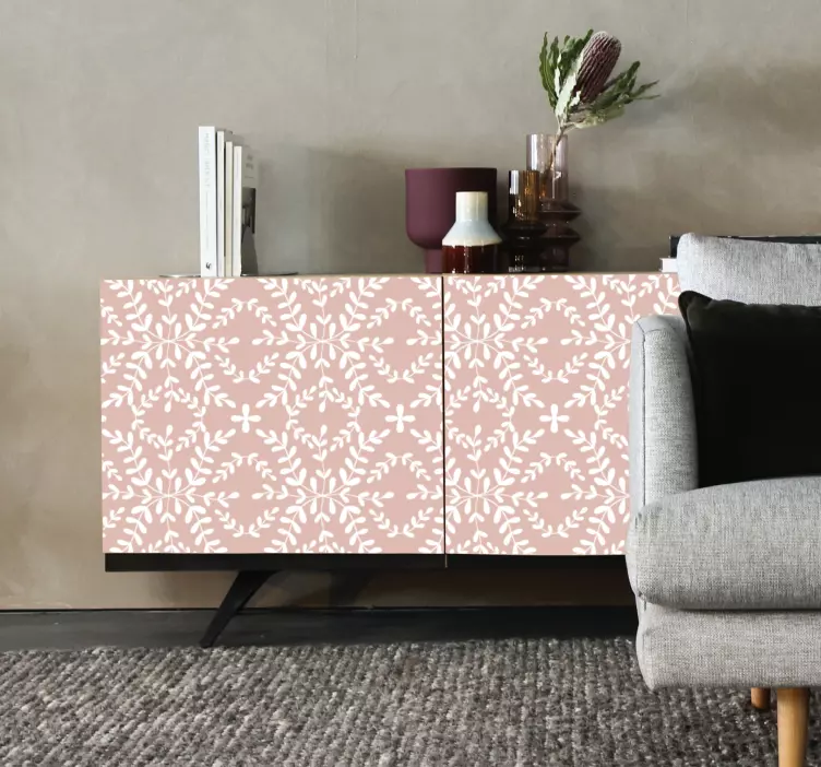 Descubre la belleza de nuestro Vinilo ornamental motivo de hojas elaboradas, un diseño que combina tonos rosas y rosados en un patrón floral elegante y moderno. Con un estilo abstracto y hojas que dan vida a tus muebles, este estampado aporta un toque fresco y acogedor a cualquier espacio. Sus tonos suaves crean una atmósfera serena, ideal para quienes buscan una decoración que inspire y relaje.