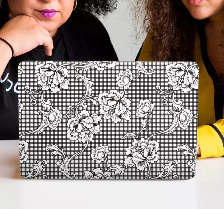 Descubre el encantador vinilo para portátil estampado floral, un diseño único que transforma tu ordenador portátil en una obra de arte. Este portátil cuenta con un hermoso patrón de flores que se despliega sobre un fondo en blanco y negro, creando un contraste elegante y moderno. El diseño emula una cuadrícula inspirada en el guingán, evocando la frescura de un jardín en flor. Cada detalle floral está meticulosamente diseñado para ofrecerte un estilo vibrante y textil que no pasará desapercibido.