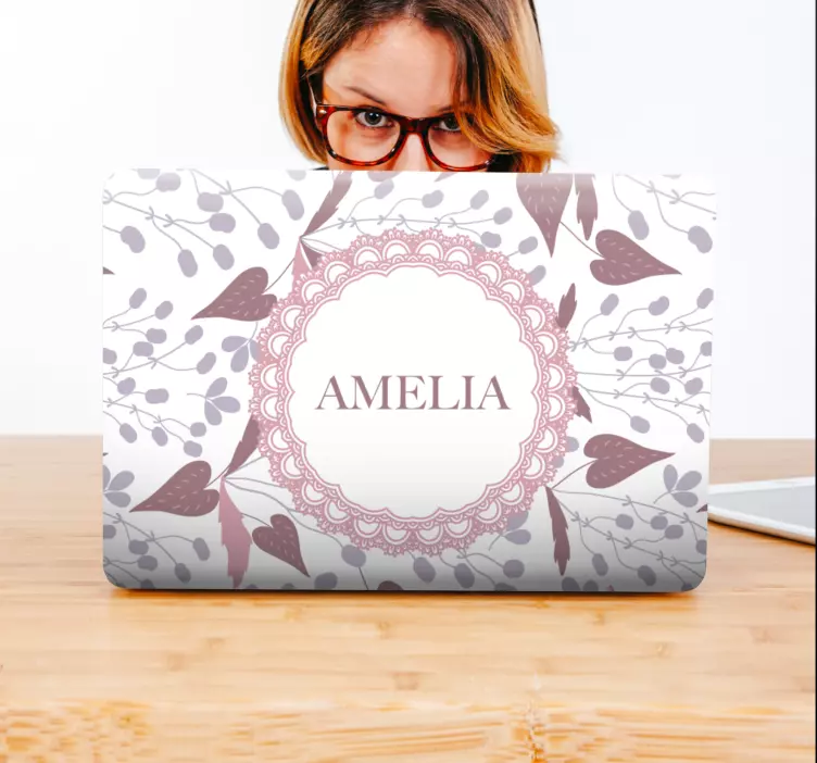 Descubre la elegancia del vinilo para portátil motivo botánico personalizado, un diseño que embellece tu ordenador portátil con un estampado floral que incluye hojas, corazones y leña menuda. Su estilo personalizable te permite añadir un toque único, transformando tu portátil en una pieza de arte que refleja tu personalidad. Este vinilo para portátil es perfecto para quienes desean combinar funcionalidad y estética de manera armónica.