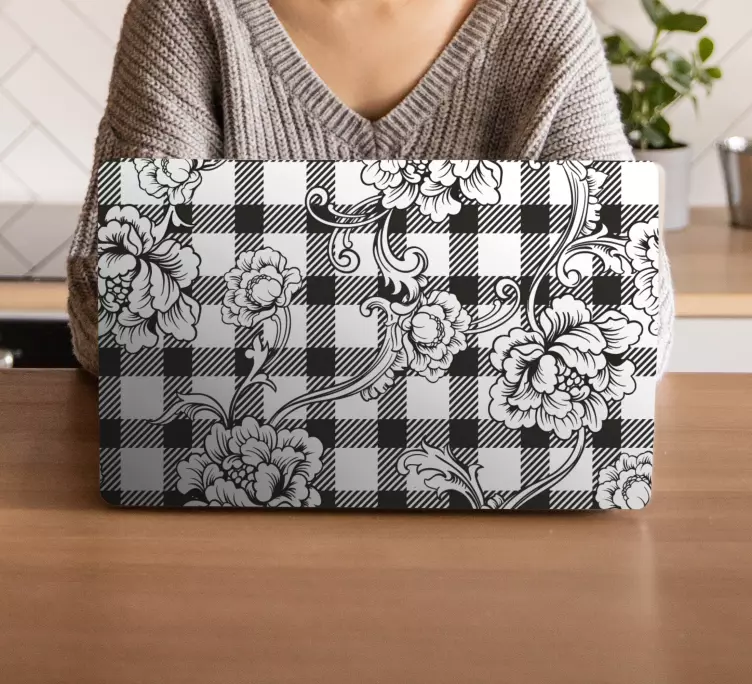 Descubre la belleza del vinilo para portátil motivo floral a cuadros, un diseño que combina un patrón floral elegante con un fondo a cuadros que resalta en blanco y negro. Esta fusión de texturas hace que tu ordenador portátil se transforme en una obra de arte única, perfecta para aquellos que buscan un toque distintivo y moderno en su equipo. ¡Deja que tu portátil refleje tu personalidad con este estampado vibrante y sofisticado!