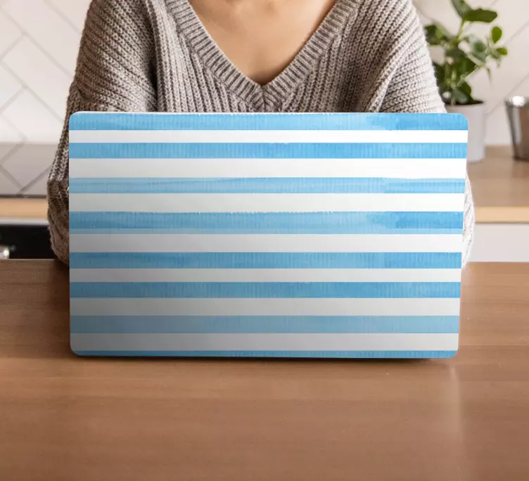 Descubre la elegancia y el estilo con nuestro vinilo para portátil superficie a rayas azules. Este diseño vibrante presenta un patrón de rayas en tonos de azul, trazos artísticos y pinceladas suaves que transformarán tu ordenador portátil en una pieza única de decoración. La combinación de líneas y el color azul crean un ambiente moderno y fresco, perfecto para expresar tu personalidad.
