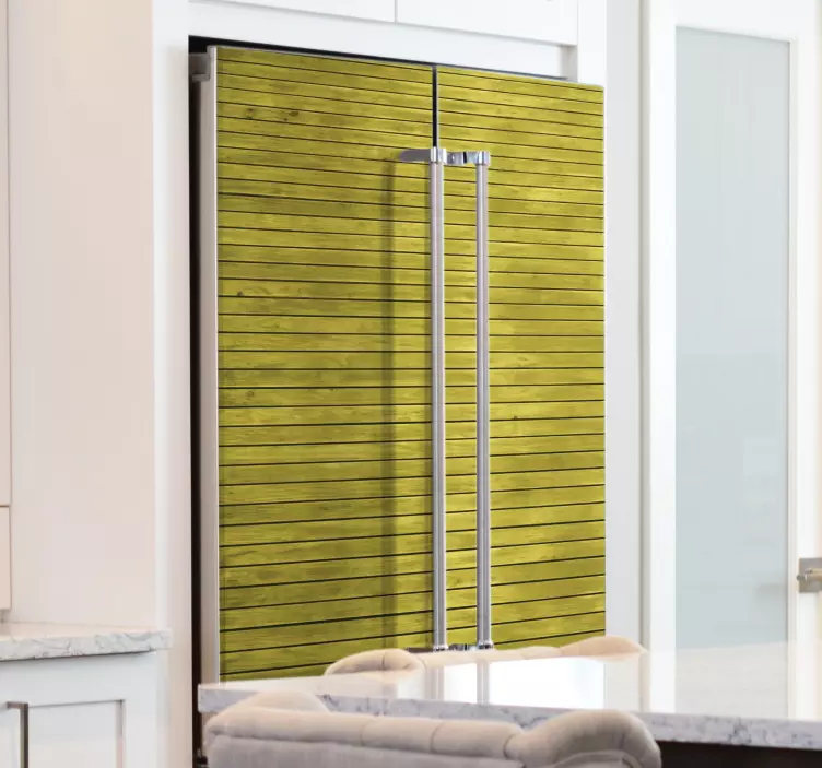 Transforma tu refrigerador en una obra de arte con nuestro vinilo para refrigerador efecto tablones de madera. Este hermoso diseño imita la textura de la madera, presentando un fondo en tonos verdes y amarillos que evocan la calidez de un hogar acogedor. Perfecto para cualquier cocina, este vinilo añade un toque rústico y contemporáneo a tu nevera, convirtiéndola en el centro de atención en tu hogar.