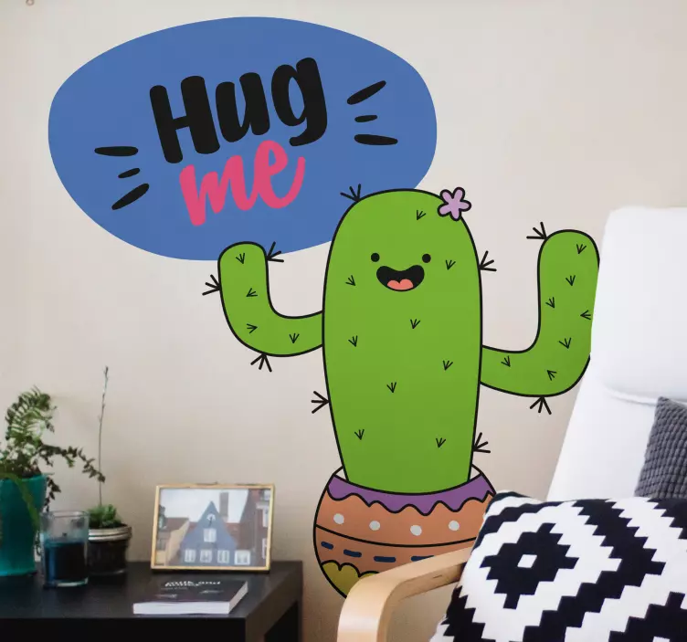 Descubre la alegría de decorar tu espacio con nuestro vinilo personaje de cactus divertido, un diseño vibrante que captura la esencia de los dibujos animados. Este adorable cactus, con su amplia sonrisa y su caprichoso abrazo, se convertirá en el centro de atención de cualquier habitación. Su apariencia linda y vistosa aporta un toque lúdico y fresco que hará sonreír a todos. ¡Perfecto para darle vida a tus paredes!