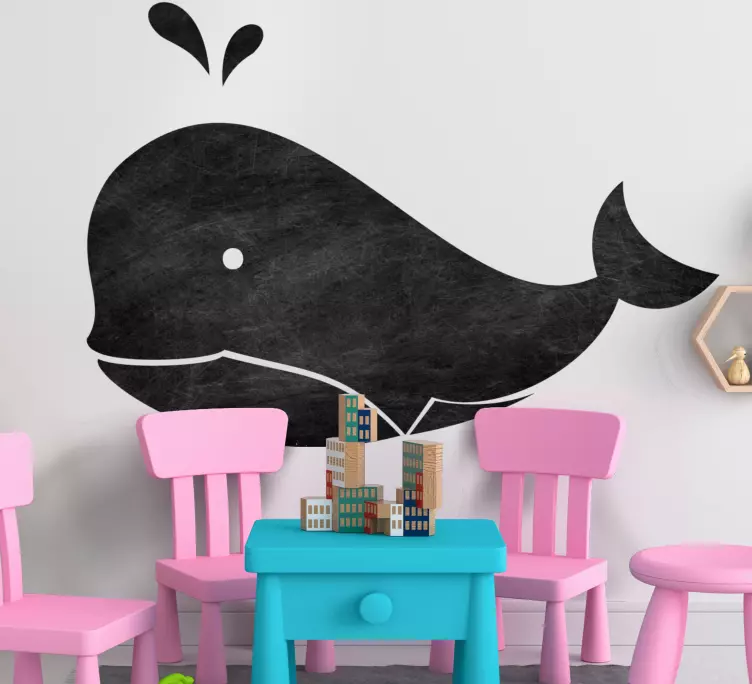 Descubre nuestro vinilo pizarra diseño de silueta de ballena, una pieza única que transforma cualquier espacio en un mundo marítimo lleno de imaginación. Este adhesivo presenta la silueta de una ballena juguetona, ideal para decorar las habitaciones de los más pequeños. Con su estilo amigable y divertido, evoca la esencia de los marineros y el océano, convirtiendo la pared en un lienzo para la creatividad infantil.
